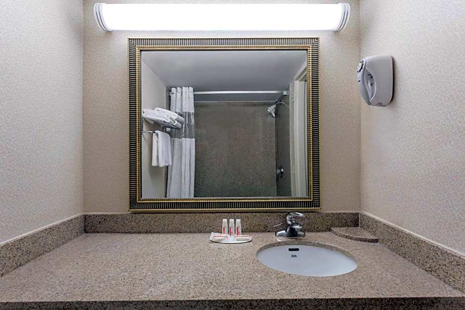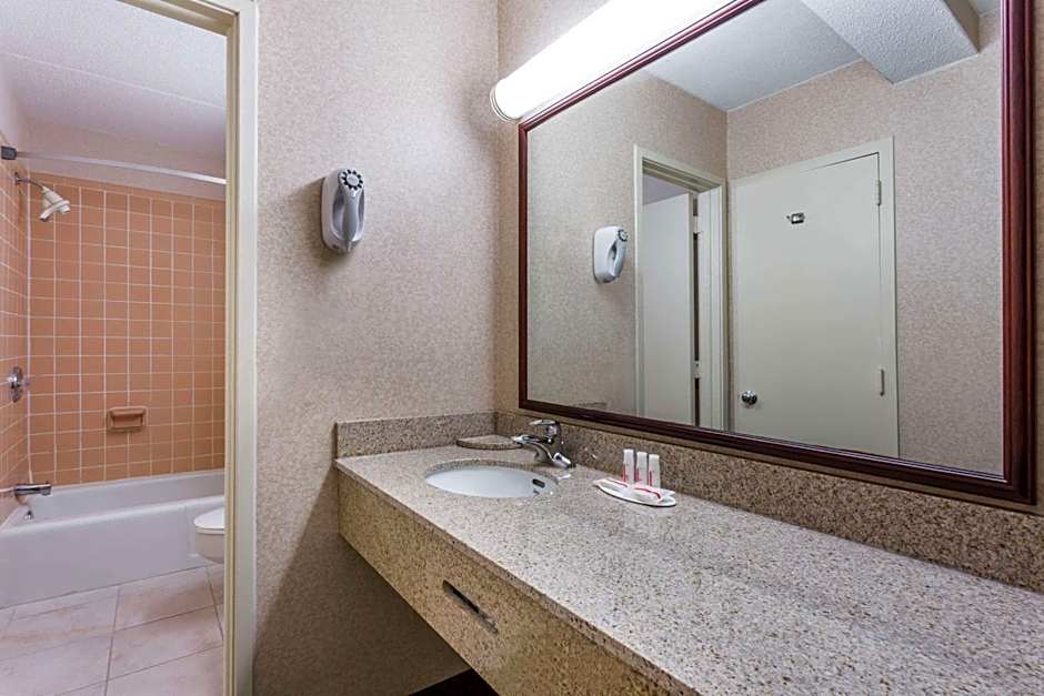 This double room has one king bed, a microwave, air conditioning and seating area.